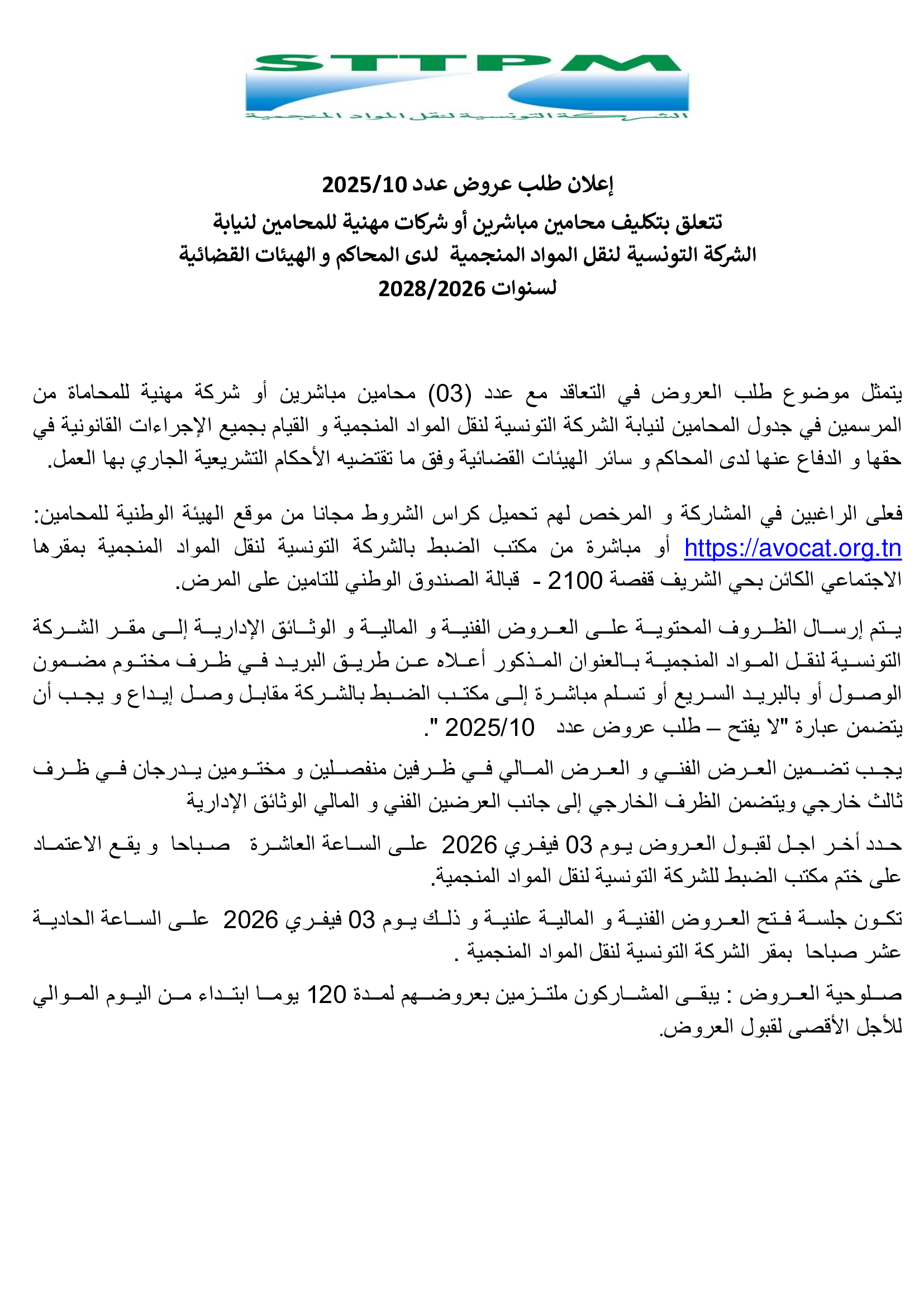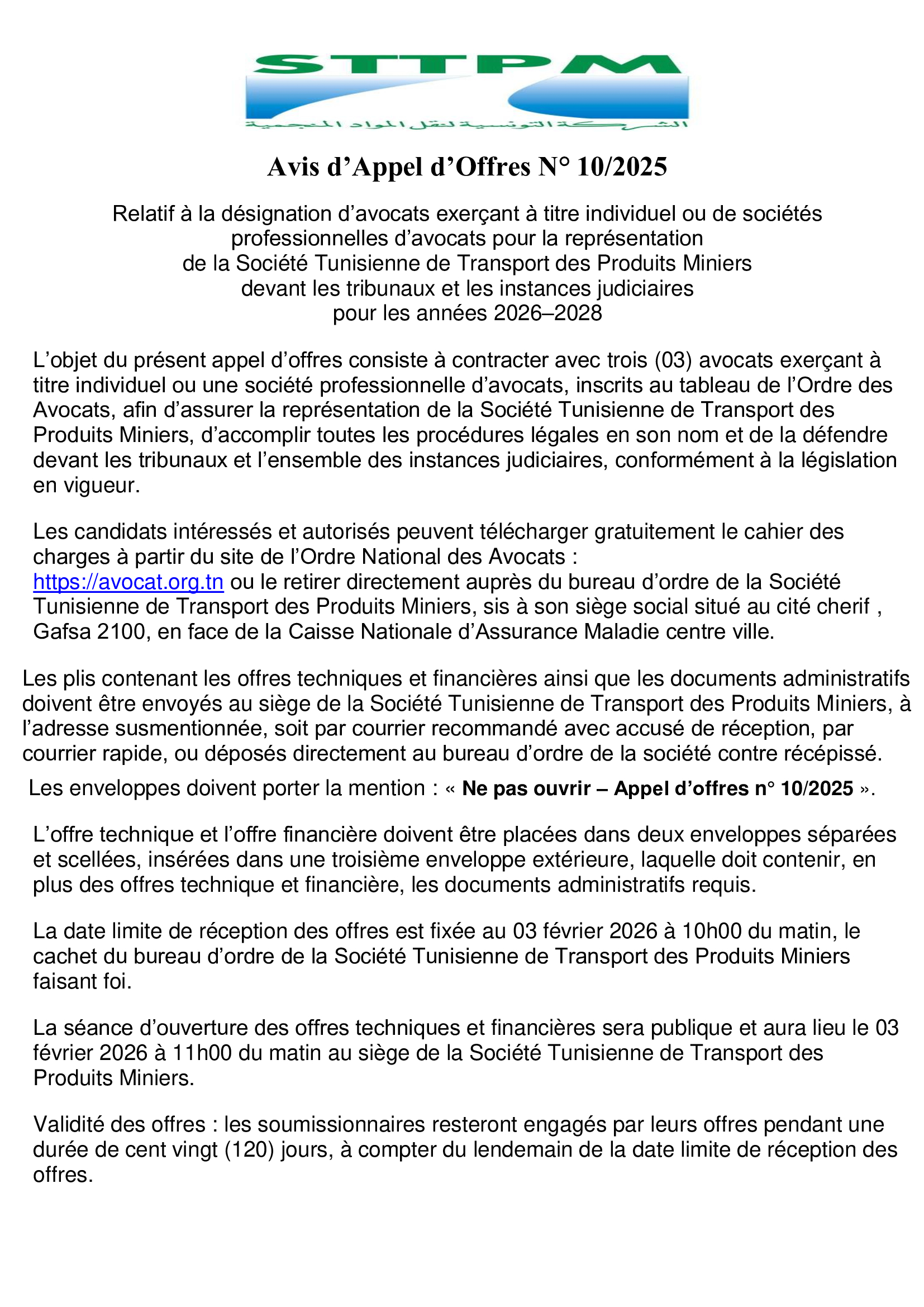 طلب عروض الشركة التونسية لنقل المواد المنجمية