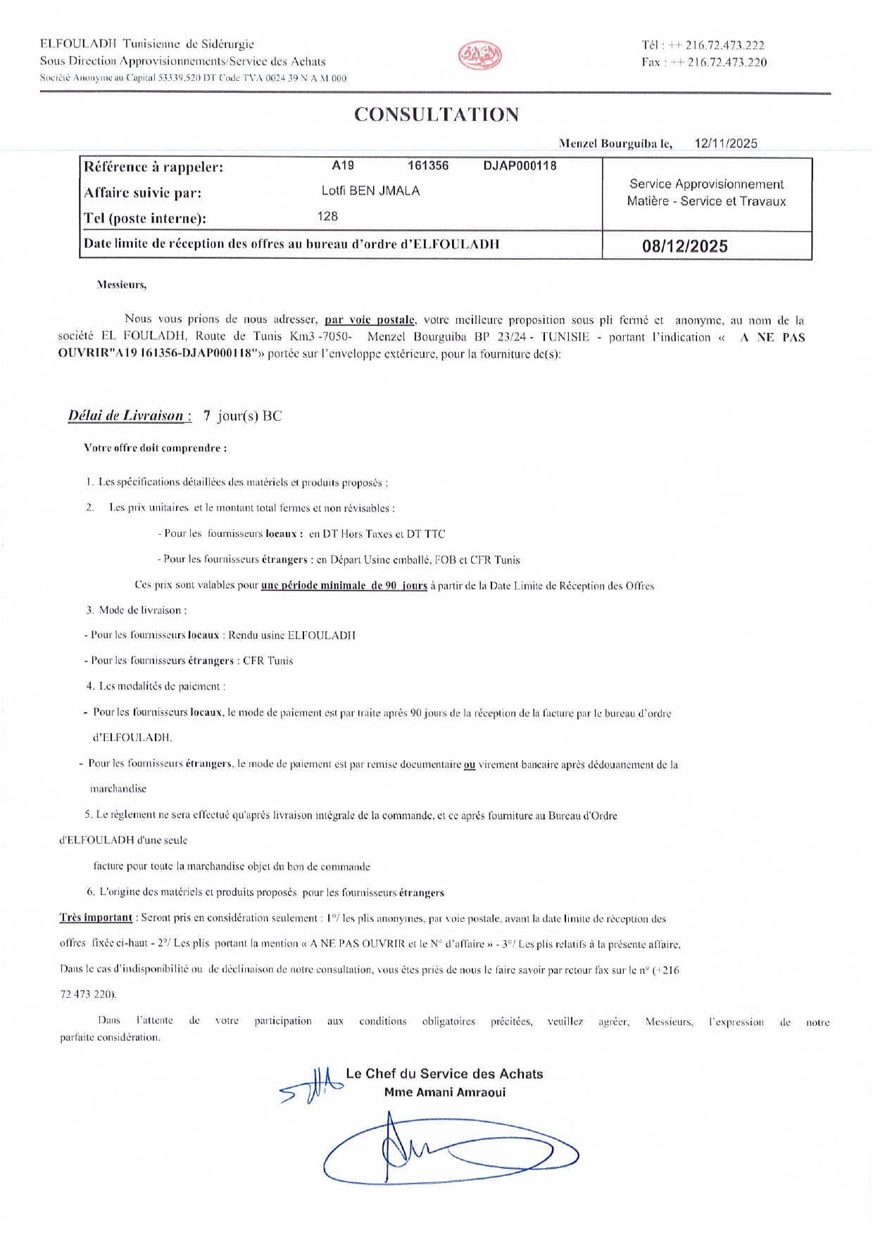 طلب عروض الشركة التونسية لصناعة الحديد-الفولاذ
